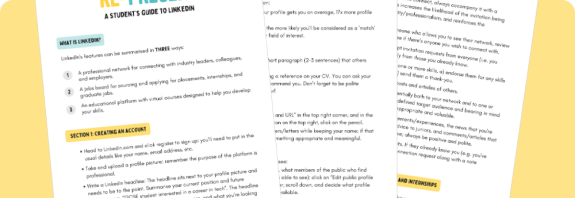 Do school teach you how to network, or how to write a CV or cover letter? Do school teach you how to act in a professional business environment? For the majority of students, the answer to that is no. So, that’s why we’ve created this resource. Download it today!