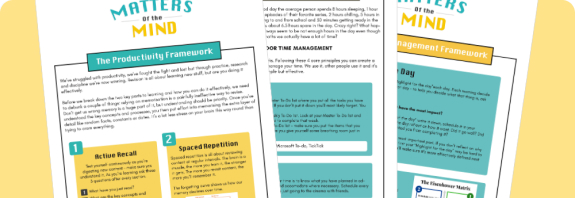 A Productivity framework, a Time Management framework, and a Wellbeing framework, all wrapped up neatly in one PDF. Your mind is a complex and powerful thing, but to use its full potential it must first be trained. Take a look at the steps we suggest!